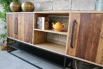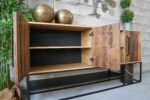 Questa esclusiva credenza, dall’aspetto moderno di design con una finitura naturale, costituisce un’aggiunta senza tempo al vostro arredo. Può essere utilizzata anche come tavolo consolle e porta TV. L’artigianalità e le belle venature del legno rendono ogni pezzo unico e leggermente diverso da tutti gli altri. Il mobile è dotato di ampio spazio per tenere riviste, libri, dvd e dispositivi multimediali in ordine e a portata di mano.
